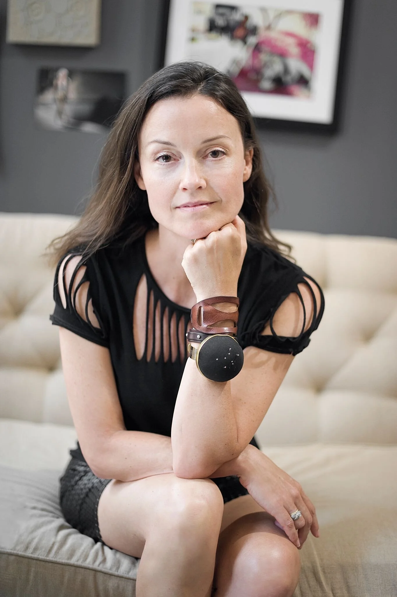 Jessica Wade seated for a portrait taken in her Atelier as part of a curated photography show at The Fashion Institute of Technology sponsored by the non-profit she co-founded Humans Who Design.